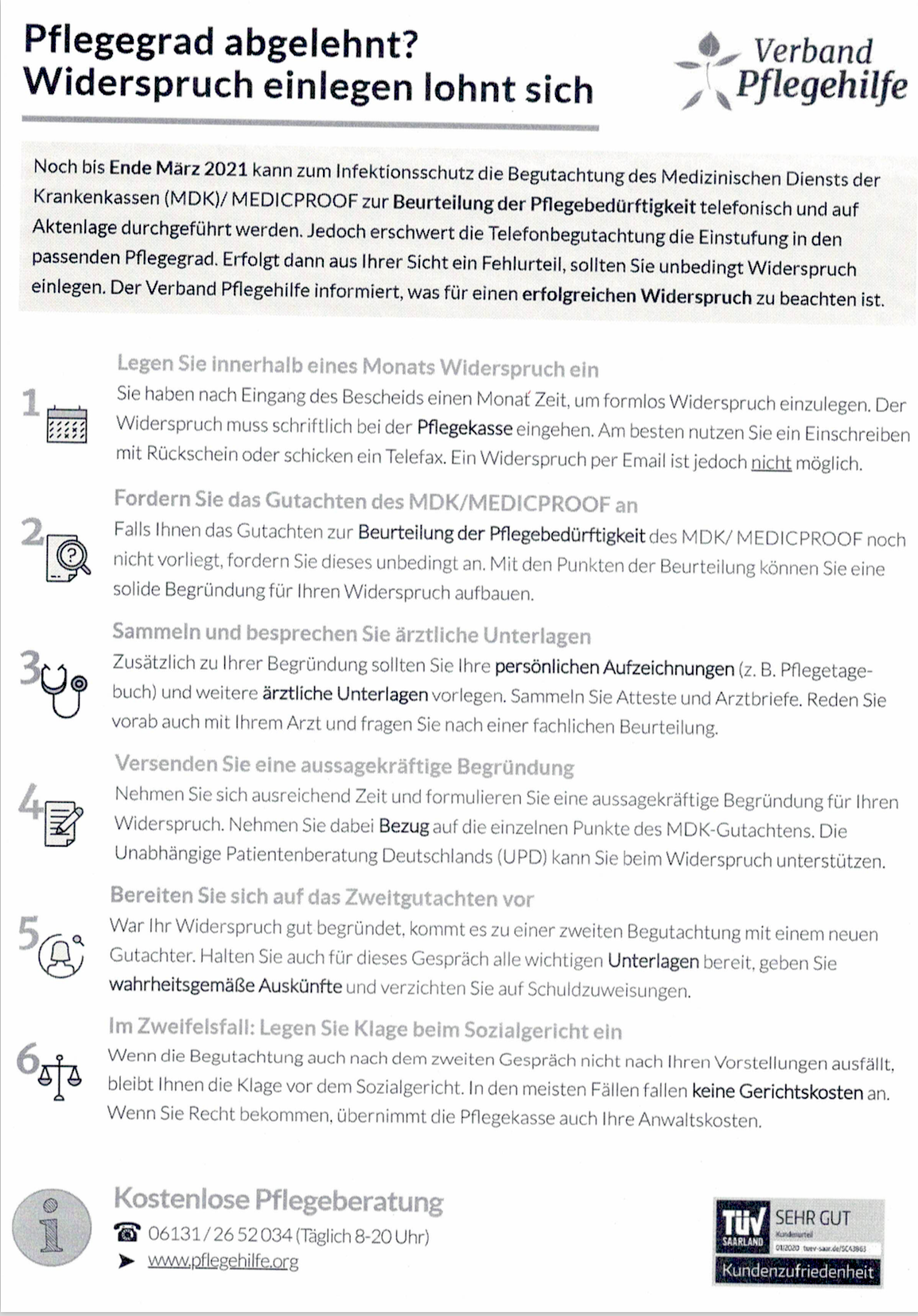 Kostenlose Vorlage zum formlosen Widerspruch gegen eine nicht zutreffende Entscheidung über den Pflegegrad von dem VP Verband Pflegehilfe GmbH,
